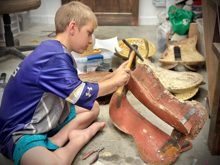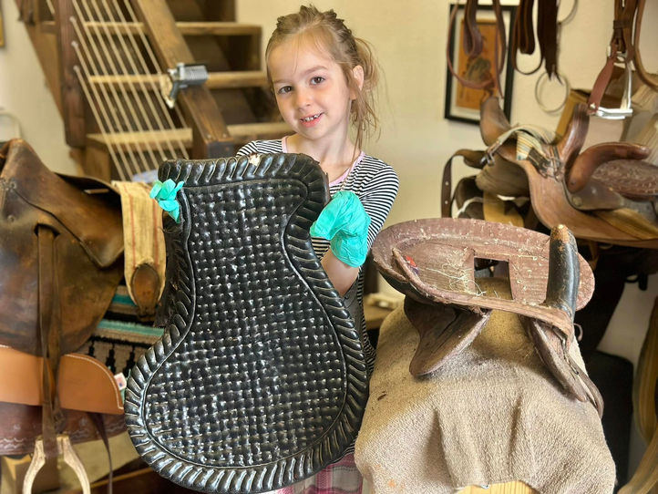 Welcome to Holly Saddlery, where work is always an adventure! Here, Jacquelynn's kids lend a hand, making every saddle a family affair. Jacquelynn invites her friends to join in the fun, working on their unique sidesaddle projects together. It's a place where creativity and camaraderie thrive!